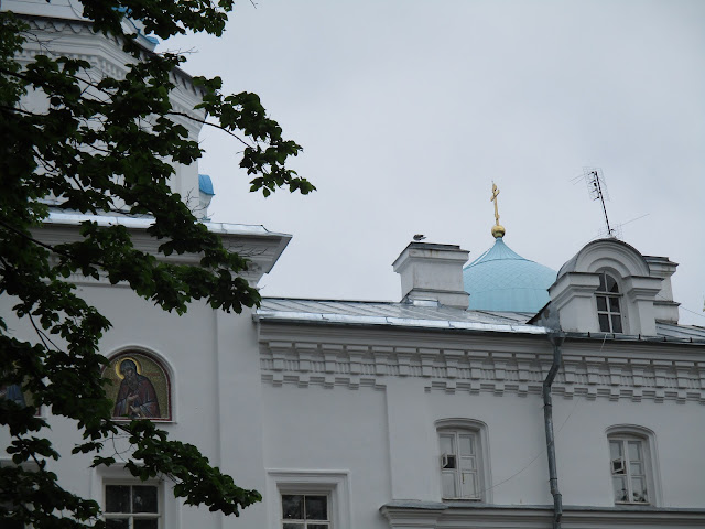 Valamon rannassa meitä oli vastassa opas, joka kierrätti meitä ympäriinsä ettei turisti poloiset vaan eksy, ei sillä kokoa rakennus kompleksilla oli mittavasti. Luostari omistaa kirkon alueen ja muurien ulkopuolen valtio. Paljon oli remontoitu ja paljon oli korjaus vaiheessa valtion alueella. Oppaan mukaan he olivat saaneet valtiolta korjauksiin rahaa, Putinia ei kukaan moittinut.